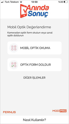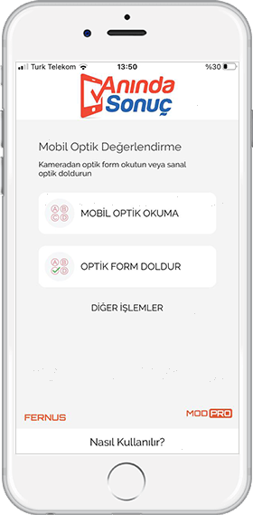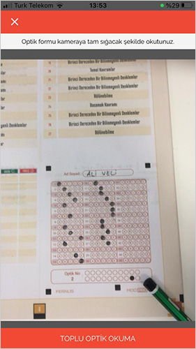 Uygulamayı indirin, optik formu kameraya okutun ve sonucu görün.